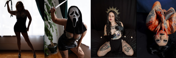 Whether it’s dramatic makeup, whip-and-chain fantasy, dominatrix vibes, or moody, gothic lighting, the goal is the same:
